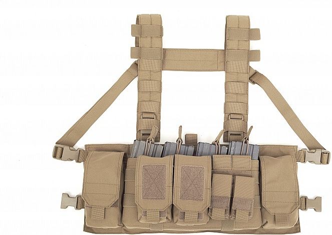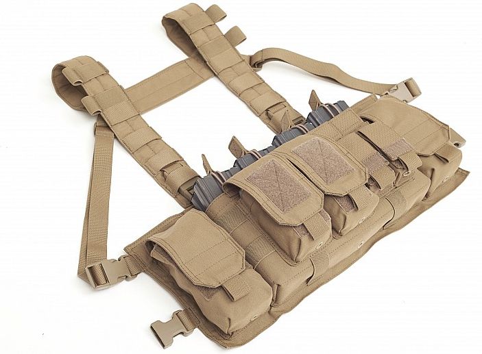 Falcon Chest Rig pojme 8 zásobníkov typu M4 alebo AK (nasaviteľné), 2 pištoľové zásobníky, a má ktomu ešte 4 pouche na rôzne iné doplnky. Falcon má schopnosť jednoducho pripojiť sa na Warrior RPC (Recon Plate Carrier), čím s Chest Rigu spravíte Plate Carrier.