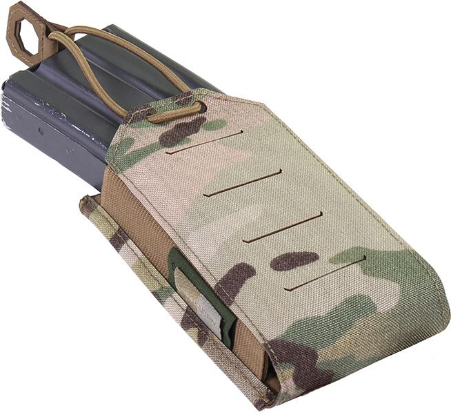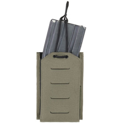 Odnímateľný pouch Triple 5.56 Mag Pouch s lasercutom sa pripevňuje na prednú časť nosiča plátov Warrior Laser Cut LPC pomocou suchých zipsov a 2 vertikálnych svoriek SQM. tento pouch pojme zásobník 5,56 mm x 45 mm a je upebnený na mieste pomocou retenčného bungee lana.