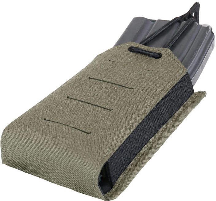Odnímateľný pouch Triple 5.56 Mag Pouch s lasercutom sa pripevňuje na prednú časť nosiča plátov Warrior Laser Cut LPC pomocou suchých zipsov a 2 vertikálnych svoriek SQM. tento pouch pojme zásobník 5,56 mm x 45 mm a je upebnený na mieste pomocou retenčného bungee lana.