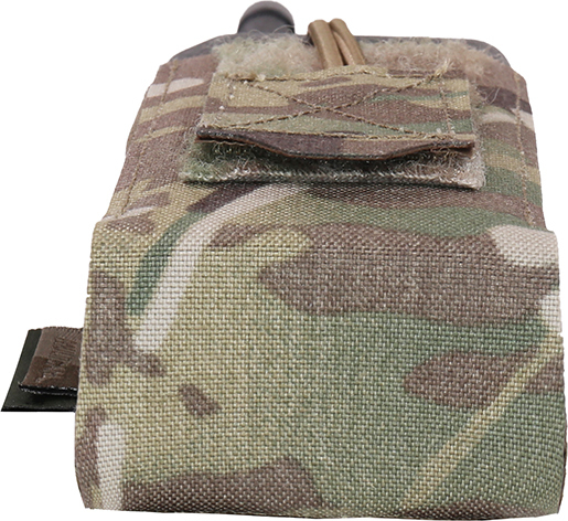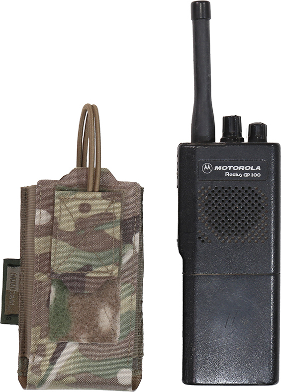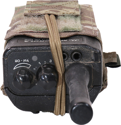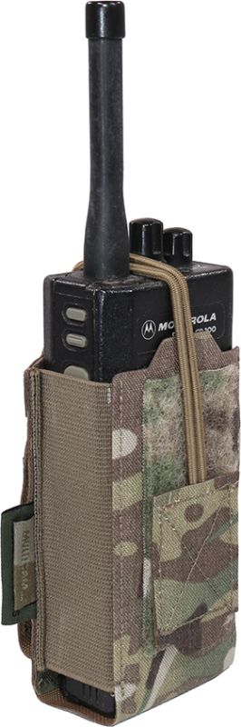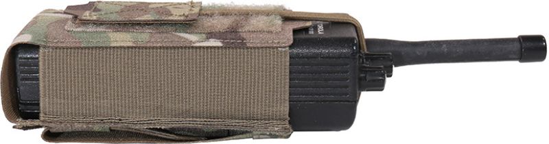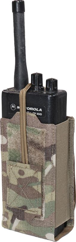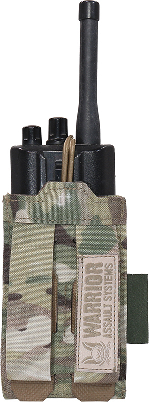 Laserom vyrezávané puzdro na vysielačku sa uzatvára suchým zipsom a gumičkou bungee, ktorá poskytuje bezpečné zaistenie. Puzdro možno pomocou dvoch ramien systému MOLLE pripevniť k rôznym nosičom Warrior, opaskom alebo batohom. Do puzdra sa zmestí široká škála bežných vysielačiek, najmä služobných.