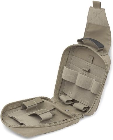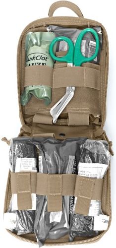 Puzdro na lekárničku je schopné pojať: 2 turnikety CAT, 2 tlakové obväzy, 2 obväzy QuickClot, pomôcku pre utesnenie perforácie hrudníka Bolin, priechodku dýchacích ciest, nožnice a ďalšie.
