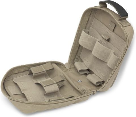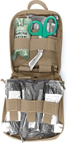 Puzdro na lekárničku je schopné pojať: 2 turnikety CAT, 2 tlakové obväzy, 2 obväzy QuickClot, pomôcku pre utesnenie perforácie hrudníka Bolin, priechodku dýchacích ciest, nožnice a ďalšie.