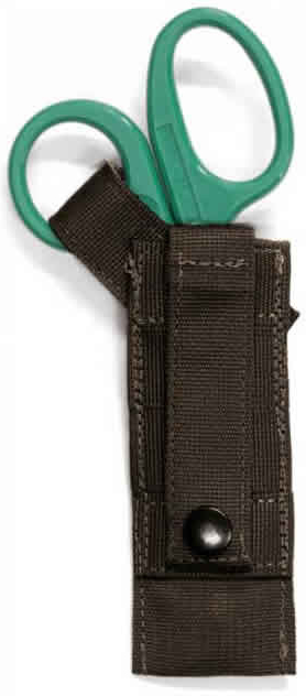 Puzdro na zdravotnícke nožnice EMT Shears je veľmi jednoduché. Pásik s kovovým patentným gombíkom zaisťuje, že nožnice z puzdra nevypadnú a zároveň sú rýchlo dostupné.