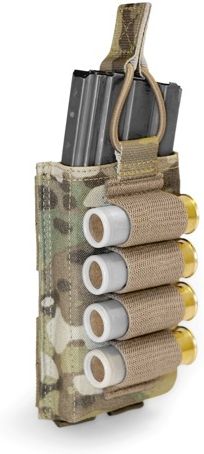 Táto sumka od firmy Warrior pojme 1 zásobník kalibru 5.56 x 45 mm a navyše 4 patróny do brokovnice. Jedinečná kombinácia munície pre útočnú pušku aj brokovnicu.