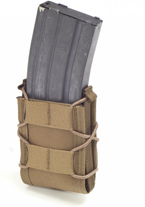 V sumke môžete nosiť zásobníky pre ráže 5, 56 mm i 7, 62 x 39 mm. Nemusíte preto pri prezbrojení kupovať nové sumky. Strany sumky drží elastická nastaviteľná šnúra, kvôli ktorej je sumka prispôsobiteľná. Vytiahnutie zásobníka je veľmi rýchle. Spôsob uchytenia zásobníka je funkčný a nemusíte sa báť, že by vám zásobník niekde vypadol. Výrobcom je Warrior Assault Systems. Sumka sa uchytáva na MOLLE väzbu.