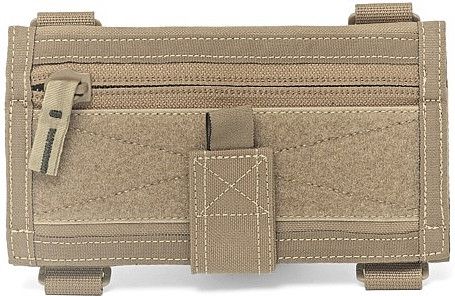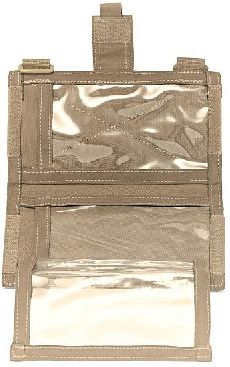 Taktické puzdro je pripevnené k zápästiu pomocou dvoch pásikov na suchý zips. Vďaka tomu sú informácie v puzdre rýchlo dostupné a zároveň v bezpečí pred nepriaznivými poveternostnými podmienkami. Panel na suchý zips na hornej strane puzdra slúži pre označenie rôznymi identifikačnými nášivkami.