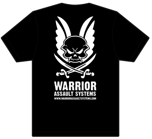 » Oficiálny produkt Warrior – malé biele logo na hrudi, veľká potlač lebky na chrbte