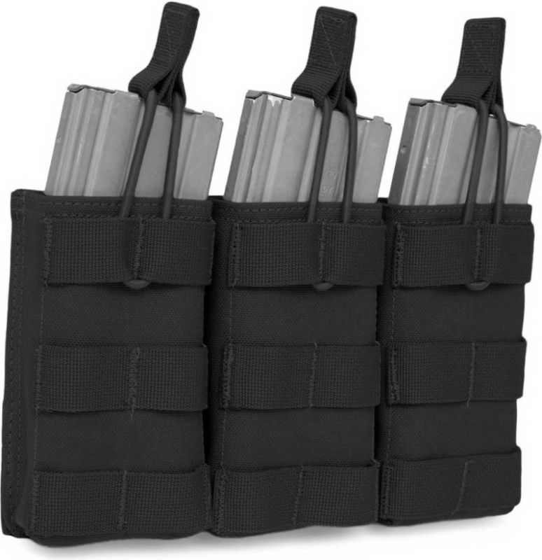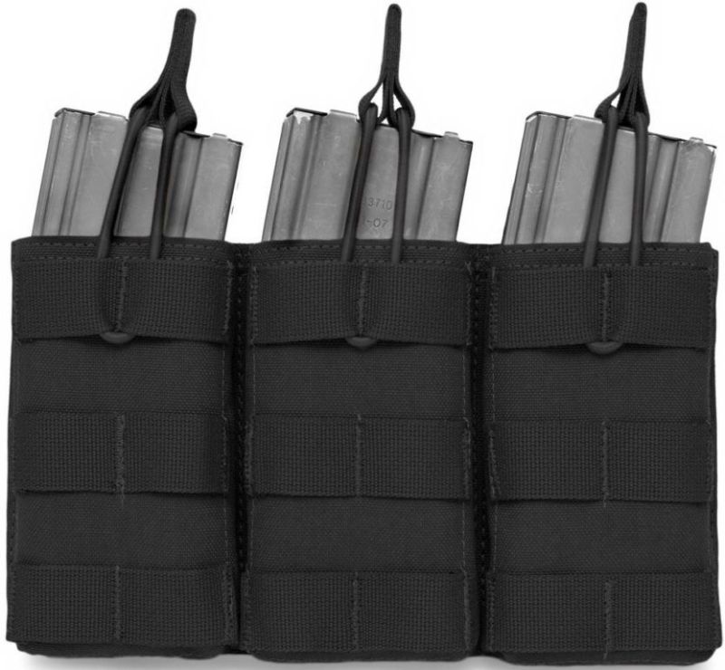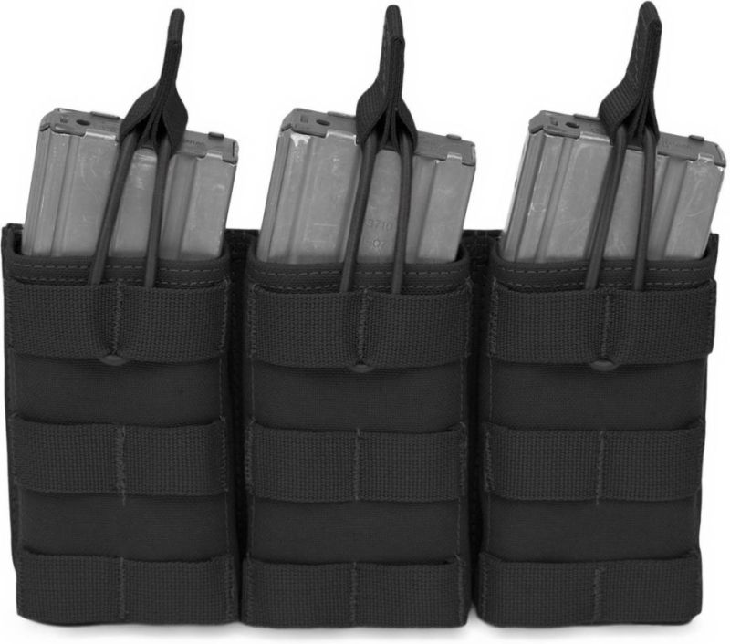 Otvorená sumka na tri zásobníky typu 5.56mm od Warrior Assault Systems. Zásobníky v sumke sú istené pomocou gumičiek, takže nevypadne a zároveň poskytuje veľmi rýchly prístup k munícii. Pásky pre uchytenie a PALS väzba na zadnej strane sumky sú samozrejmosťou.
