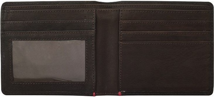 Peňaženka má 2 priehradky na bankovky a päť priehradiek na platobné a vernostné karty, vrátane priehľadného plastového vrecka na doklady.