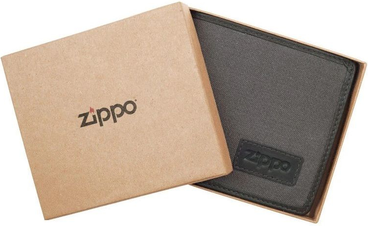 Na vonkajších stranách je peňaženka zdobená odolnou tkaninou obšitá kožou vrátane rámčeka s vyrazeným logom Zippo.